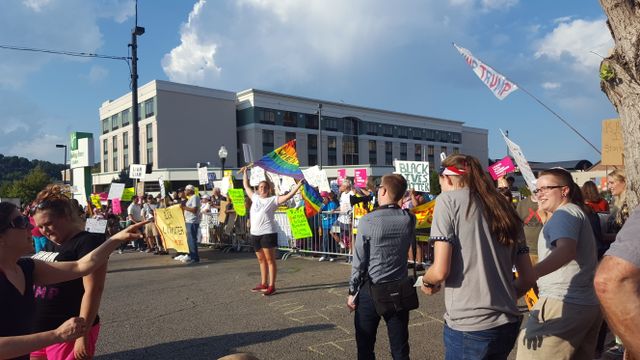 Hundreds protest Trump appearance in Huntington, West Virginia