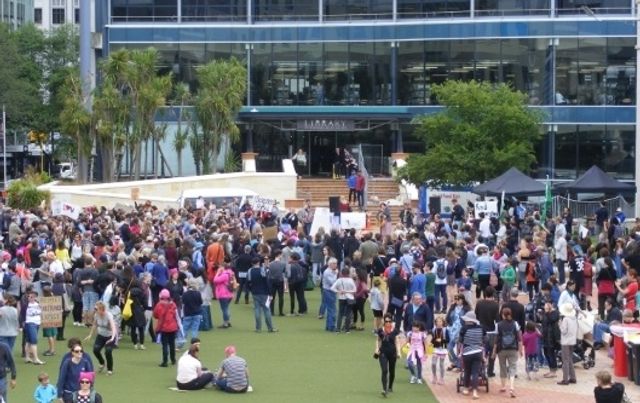 In Myers Park, Auckland, the opening speaker, New Zealand-American…