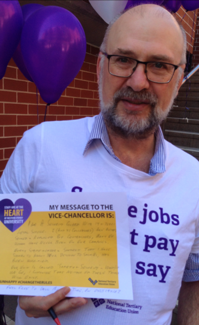 Among them was Greg Pinchbeck, one of the 41 security officers being retrenched by the university, and being replaced by contract labour. Pinchbeck has been employed at WSU for 14 years. He started in 2003 as a casual, and was made permanent in 2005. Before that he had worked at Telstra, the former publicly-owned telecommunications company, for 24 years, before being retrenched from there as well.